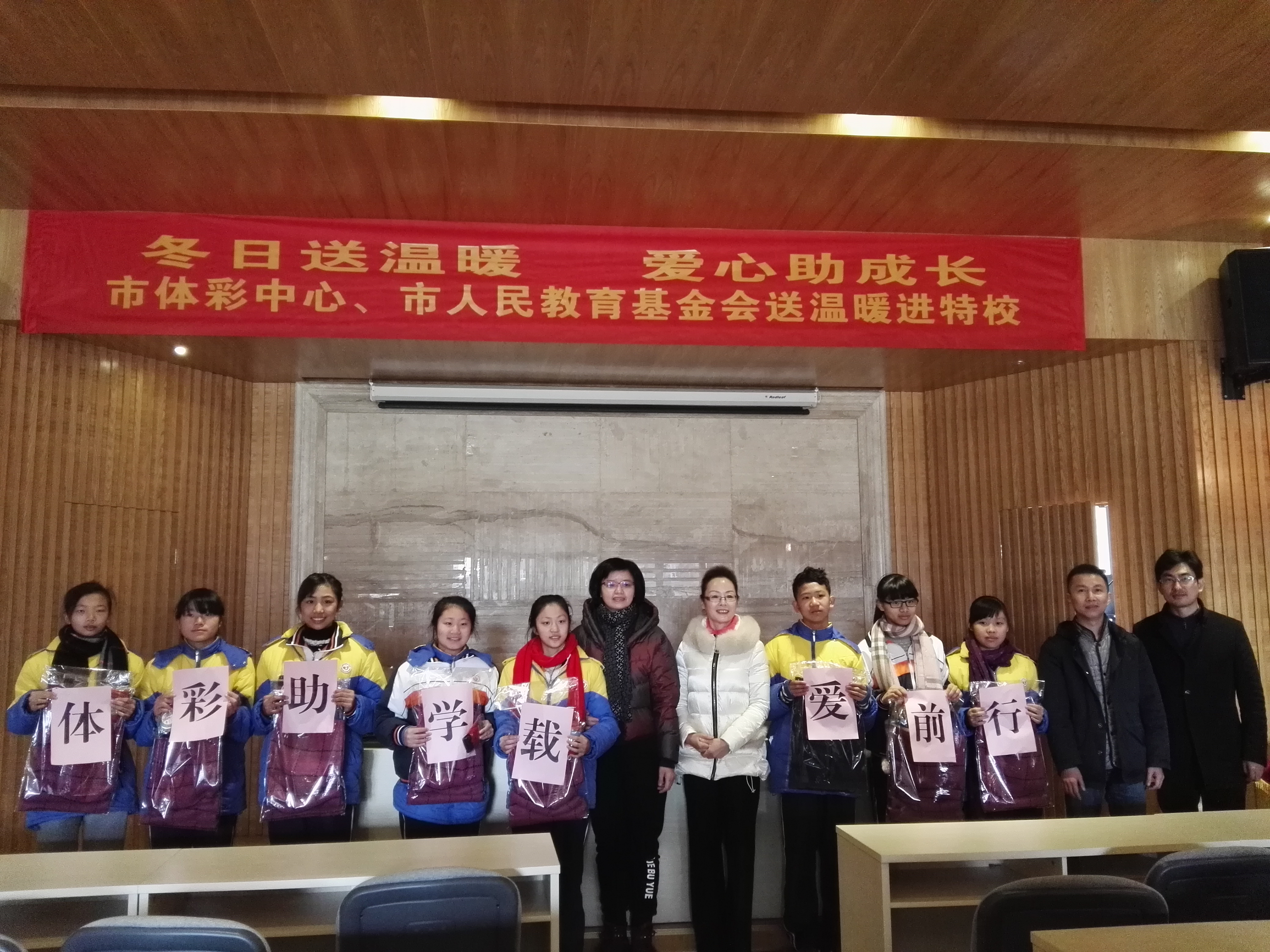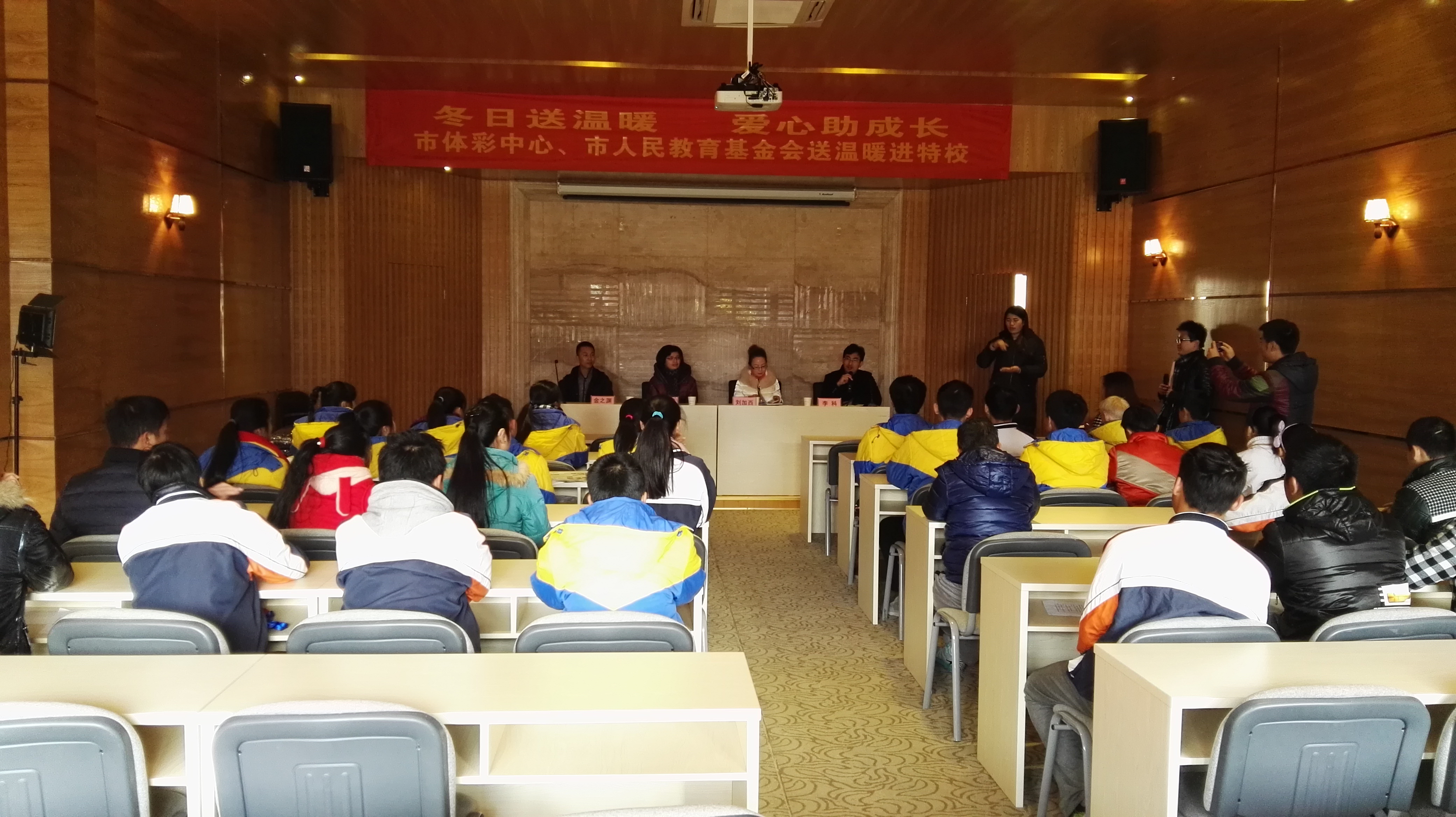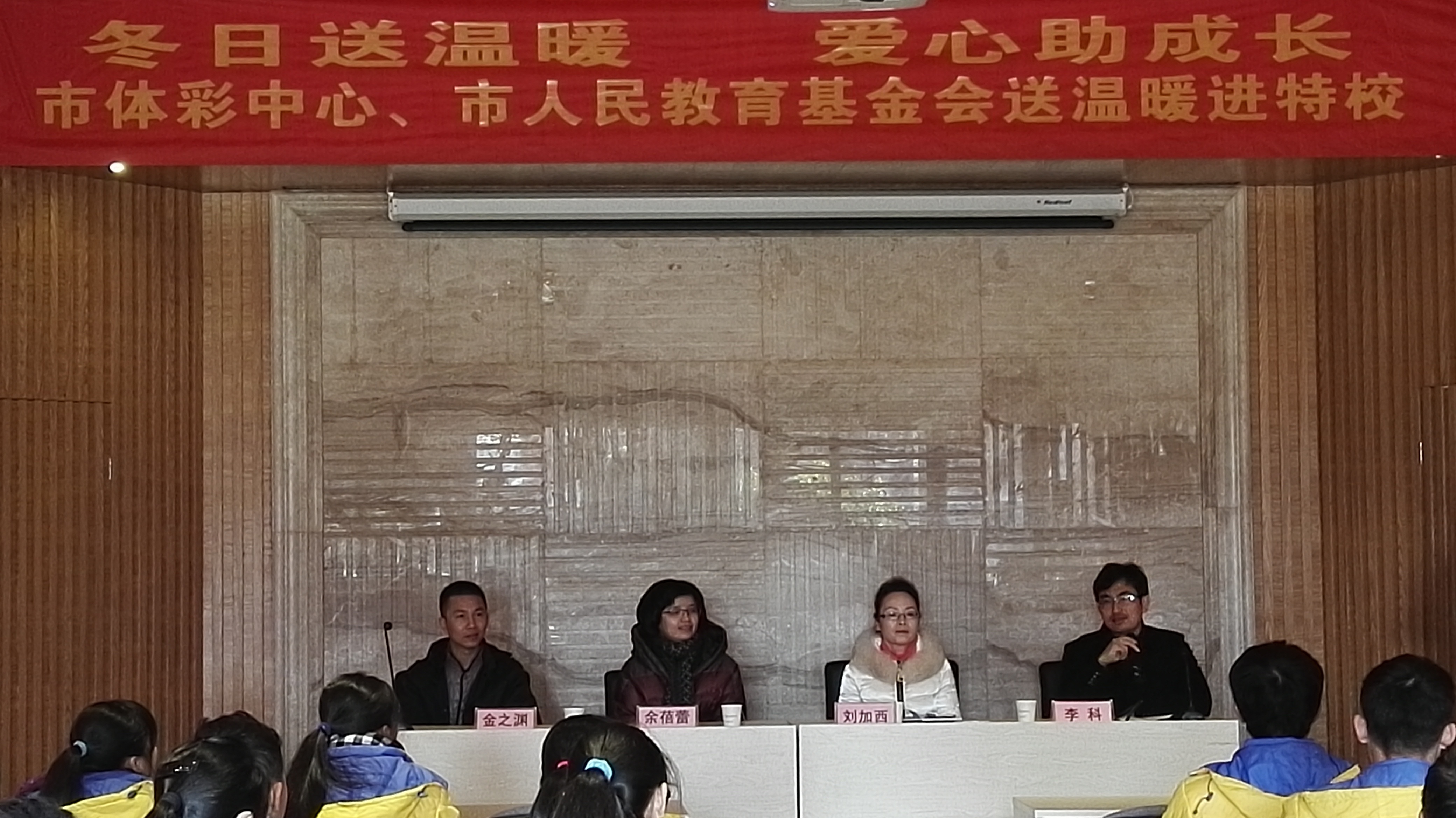 今天一大早,温州市人民教育基金会和温州市体育彩票管理中心一行人,冒着严寒赶往温州市特殊学校开展“冬日送温暖,爱心助成长”活动。此次活动主要目的是:献一片爱心,送一份温暖,用实际行动和火热的爱心激励残障孩子健康成长。