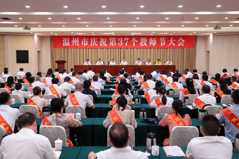 市委副书记、市长姚高员主持会议。市领导葛益平、陈作荣、陈浩等出席会议。会上,市领导为省正高级教师、省教坛新秀以及首批市中小学思政课教师年度人物、在温高校优秀教师、“瓯越情”优秀教师(校长)、市优秀教师(班主任、教育工作者)代表等颁奖。鹿城区、温州职业技术学院、温州中学、平阳县南雁镇中心小学教师等作了发言。