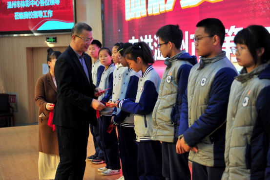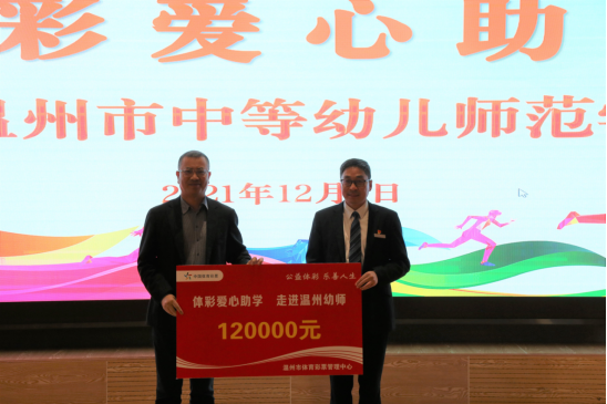 12月1日上午,温州市体育彩票管理中心举行2021年“体彩爱心助学”助学金颁发仪式,温州市体育局党委书记、局长张志宏,温州市教育局党委委员、副局长张维凯,温州市体育彩票管理中心主任余蓓蕾,温州市人民教育基金会副秘书长张海坚等人参加仪式。