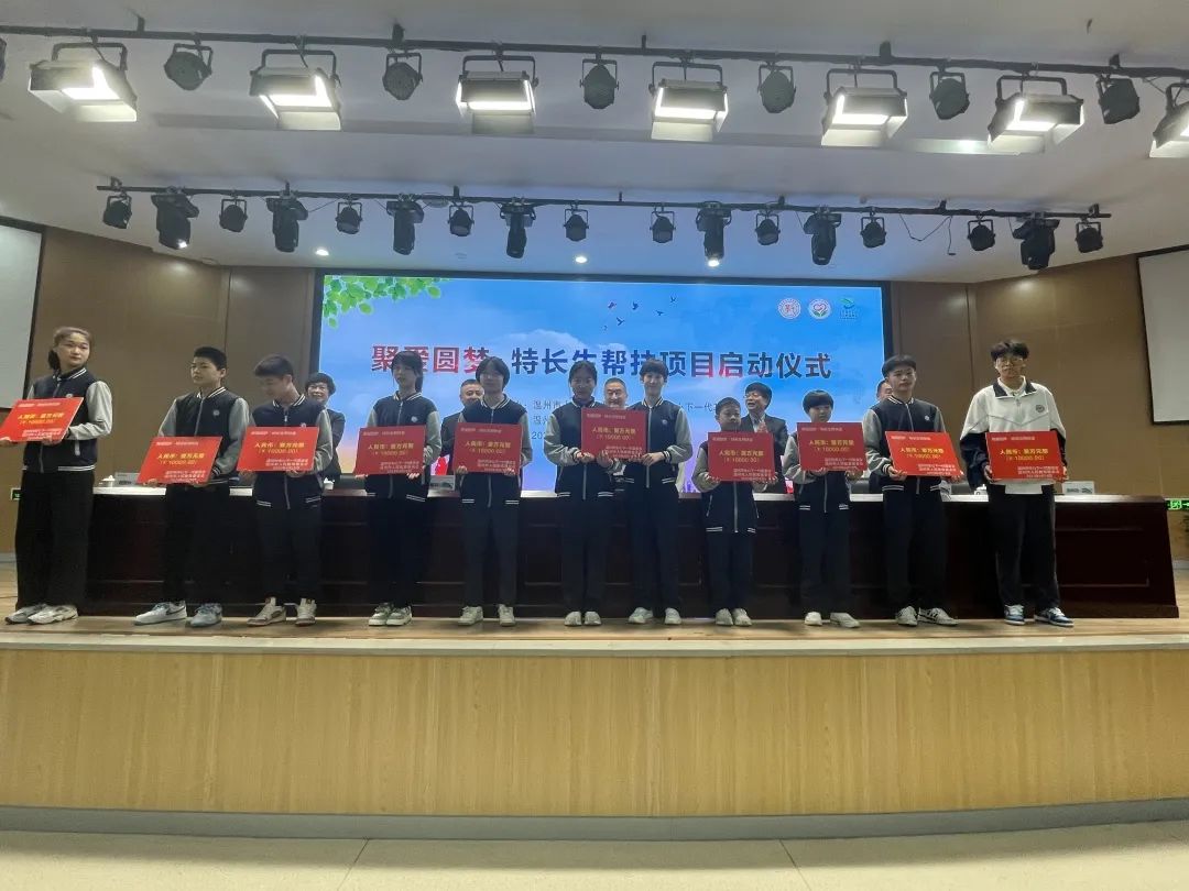 启动会上,温州市人民教育基金会和温州市关心下一代基金会签署合作协议书,并向项目组划拔项目年度经费100万。温州体育运动学校被授予“温州市聚爱圆梦特长生帮扶基地”,学校和特长生代表分别作了表态发言,市教育局副局长张维凯作了动员讲话,最后,市关工委主任、市决咨委副主任卓高柱作了重要指示。