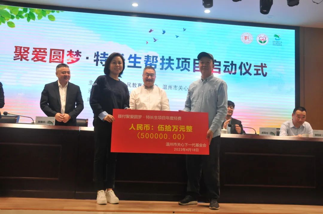 据了解,为扎实推进特长生帮扶项目,市关心下一代基金会反复多次深入温州体育运动学校、温州商学院、温州市特殊教育学校等单位走访调研,了解我市各类特长生的培养模式和途径,先后3次与市教育局共同论证和确定了特长生的选送标准。下一步,还将开展特长生优秀指导老师评选活动,挖掘和树立一批敢于开拓创新、善于育才提能、常于幕后付出的特长“名师”,助力青少年特长生成为特定职业领域的专业人才,为温州打造教育高地,高质量建设共同富裕示范区市域样板贡献力量。