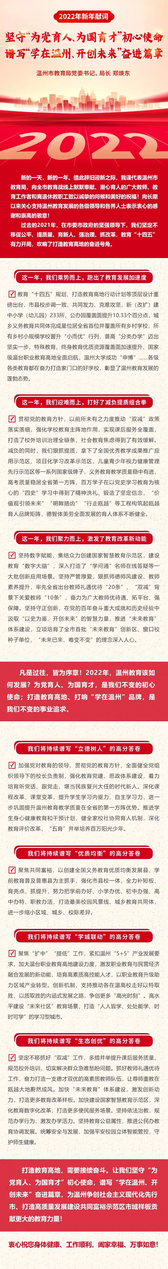 温州市教育局党委书记、局长郑焕东2022年新年献词