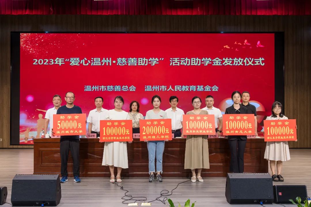 近日,2023年度“爱心温州·慈善助学”助学金发放仪式在温州市第二十一中学举行。市慈善总会与市人民教育基金会共同出资190万元,用于资助全市350名困难高中生和340名困难大学生。