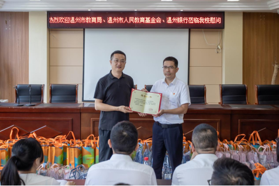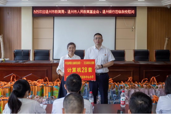 9月12日,温州市教育局机关第二支部、温州市教育工会教育基金会联合支部,联合温州银行金融科技部第一、二党支部走访永嘉县茗岙乡中心小学,开展慰问、捐赠活动。温州市教育工会主席徐俊、温州市人民教育基金会赵坚琳、温州银行党群工作部巡察办副主任王建宁、温州银行金融科技部副总经理张海波,以及各党支部成员出席了本次活动。茗岙小学校长潘文文、茗岙乡党委委员虞志菲,热情接待了来宾并表达衷心感谢。