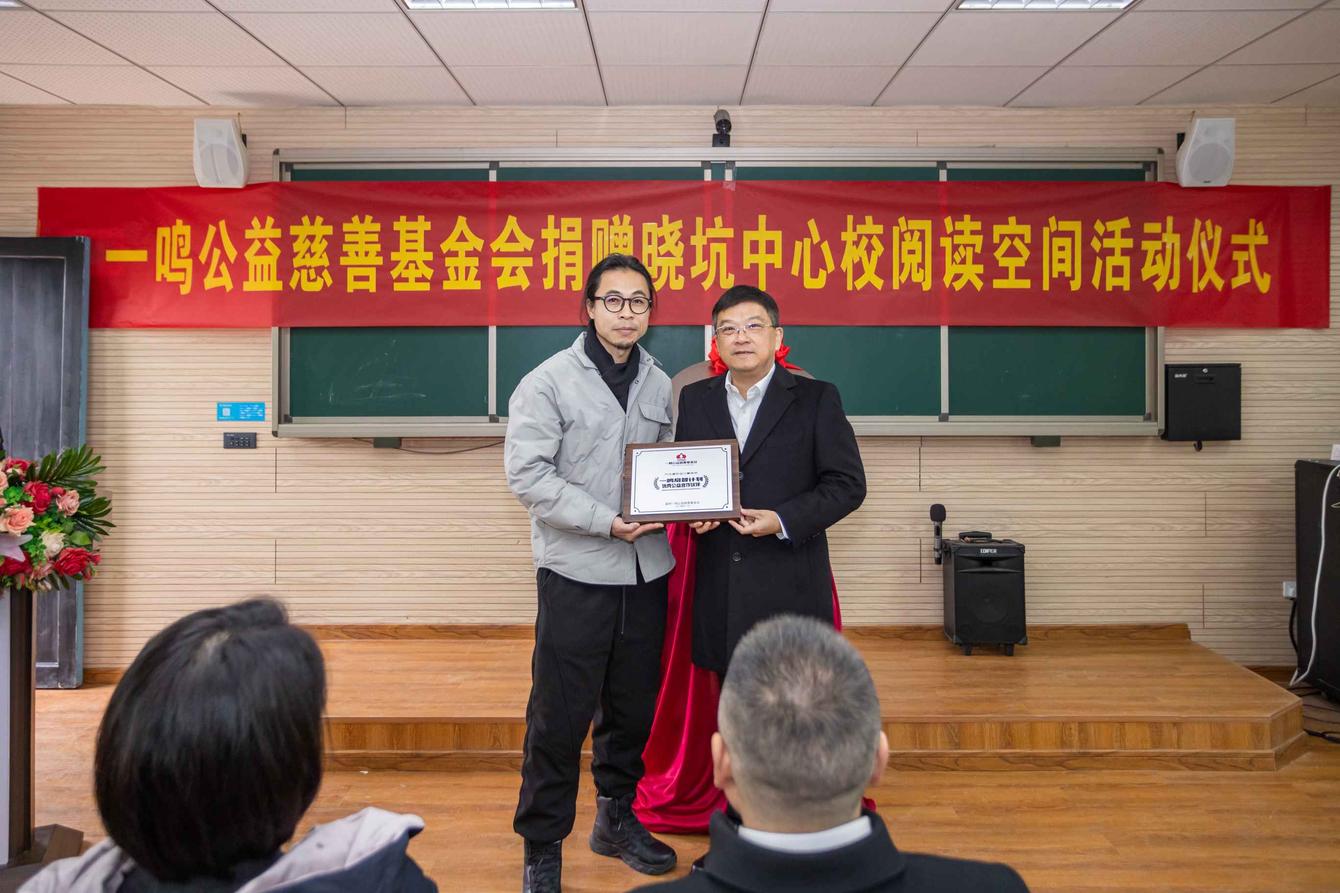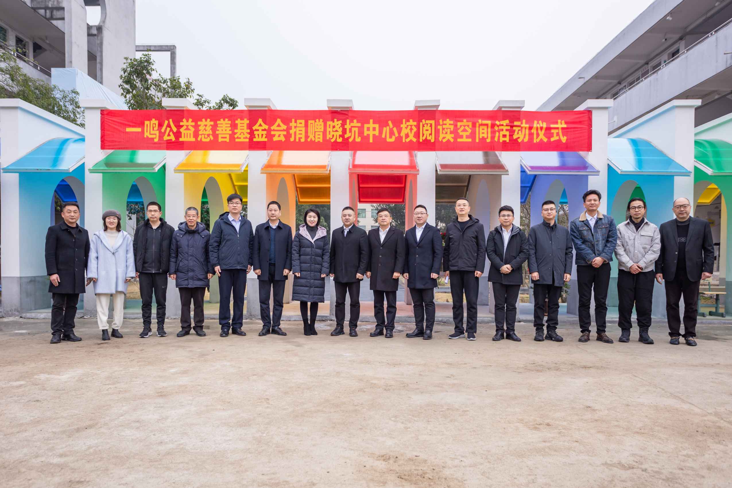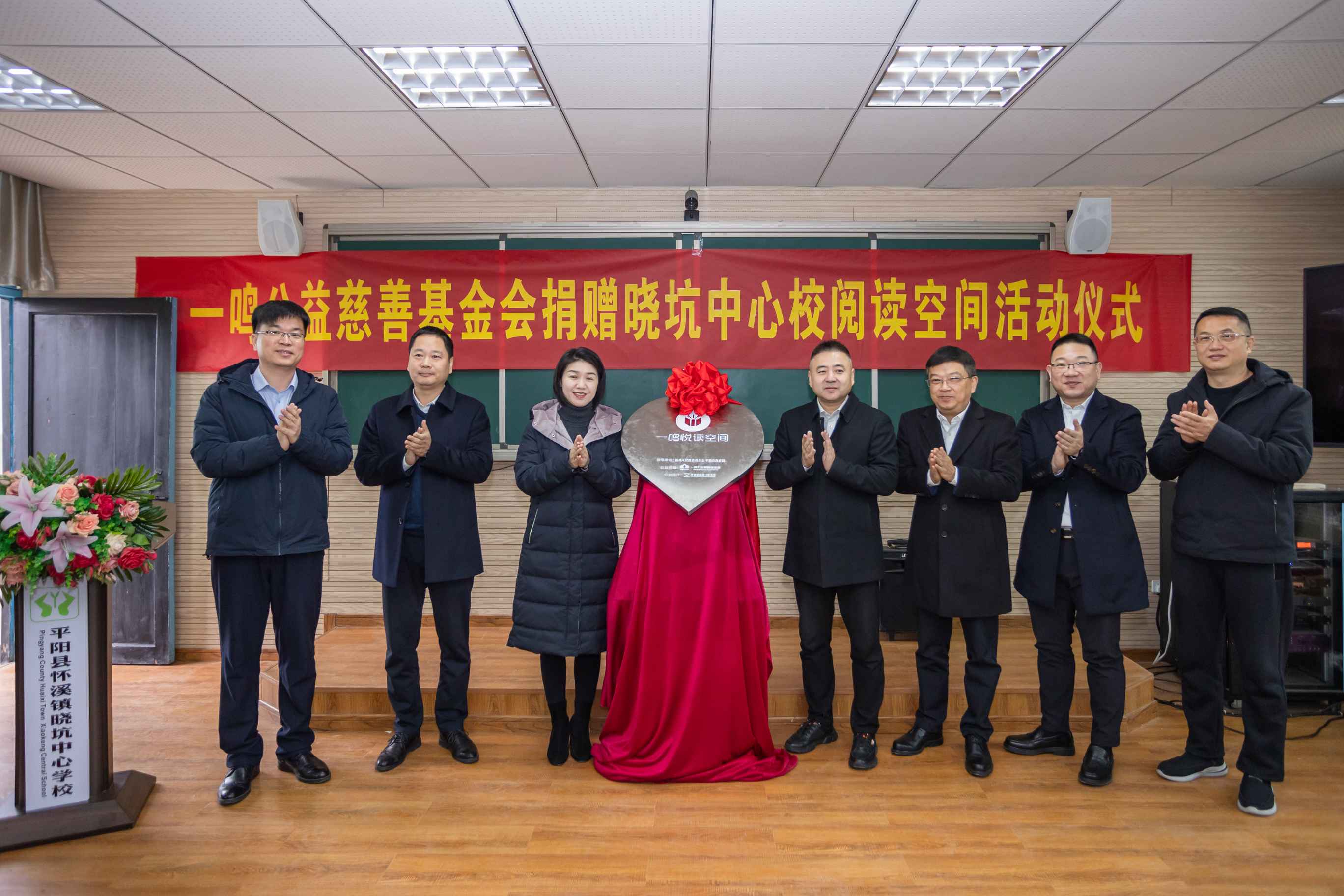 今天,温州市人民教育基金会与温州一鸣公益慈善基金会在晓坑中心校为孩子们的“悦读空间”举行了揭牌仪式。温州市教育局党委委员、副局长张维凯,温州市教育局人事处副处长林德格,平阳县人民政府副县长屠霁霞,平阳县教育局书记、局长林侠,平阳县怀溪镇党委书记张其洋,平阳县教育局党委委员、副局长詹淼,温州市人民教育基金会秘书长赵坚琳,温州市人民教育基金会副秘书长张海坚,浙江一鸣食品股份有限公司董事长朱立科,浙江一鸣食品股份有限公司学生营养事业部总经理吴孝松,温州一鸣公益慈善基金会秘书长薛蕾蕾,开合建筑设计事务所创始人崔海峰,市教育局、平阳县人民政府、怀溪镇人民政府其他干部及晓坑中心校教生们出席了本次仪式。