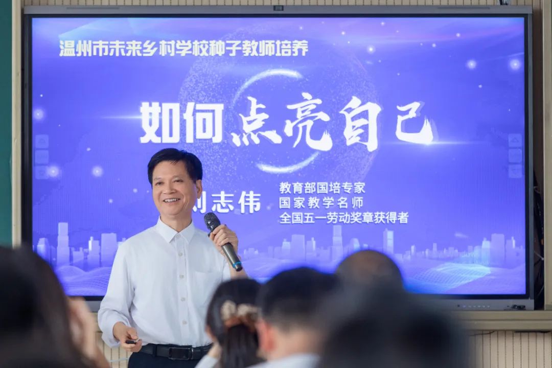 当天下午,项目学员开启分班活动,继续研修第一课。“种子校长”“种子青才”项目学员共同听取温州市15所市级未来乡村窗口培育校校长带来的主题展示,并对3所乡村学校的发展困境进行诊断,在专家指导下就教师队伍建设、校园文化提升、办学条件改善等方面进行交流研讨、献计献策。“种子教师”项目学员听取“我心中的未来乡村教师”主题展示。未来乡村教师如何成为发光的人?教育部“国培计划”专家、特级教师刘志伟老师以《如何点亮自己》展开进一步引领。