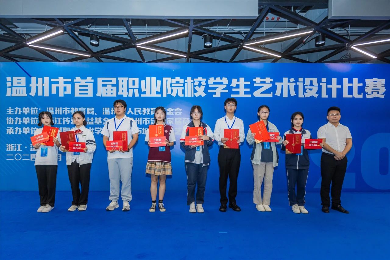 温州市教育局党委委员、二级调研员郑为民表示,本次大赛是行业协会参与举办职业院校技能比赛的首次尝试,是职业教育深化校企合作、推进校企双元育人的重要举措。参赛选手立足温州本土文化,充分挖掘瓯越非遗、南戏故里、创新之城、宋韵诗画、畲乡风情等多种元素,创作了温州明信片、邮票、服装、创意家居等系列作品,设计新颖、创意独特,充分展示了我市职业院校学生的艺术基本功底和创新能力。郑为民强调,各职业院校师生要以本次艺术设计大赛为契机,深入学习了解瓯越文化,创新展示瓯越文化,争做温州文化的挖掘者、传播者和创造者,为温州创新之城、时尚之都贡献青春力量。